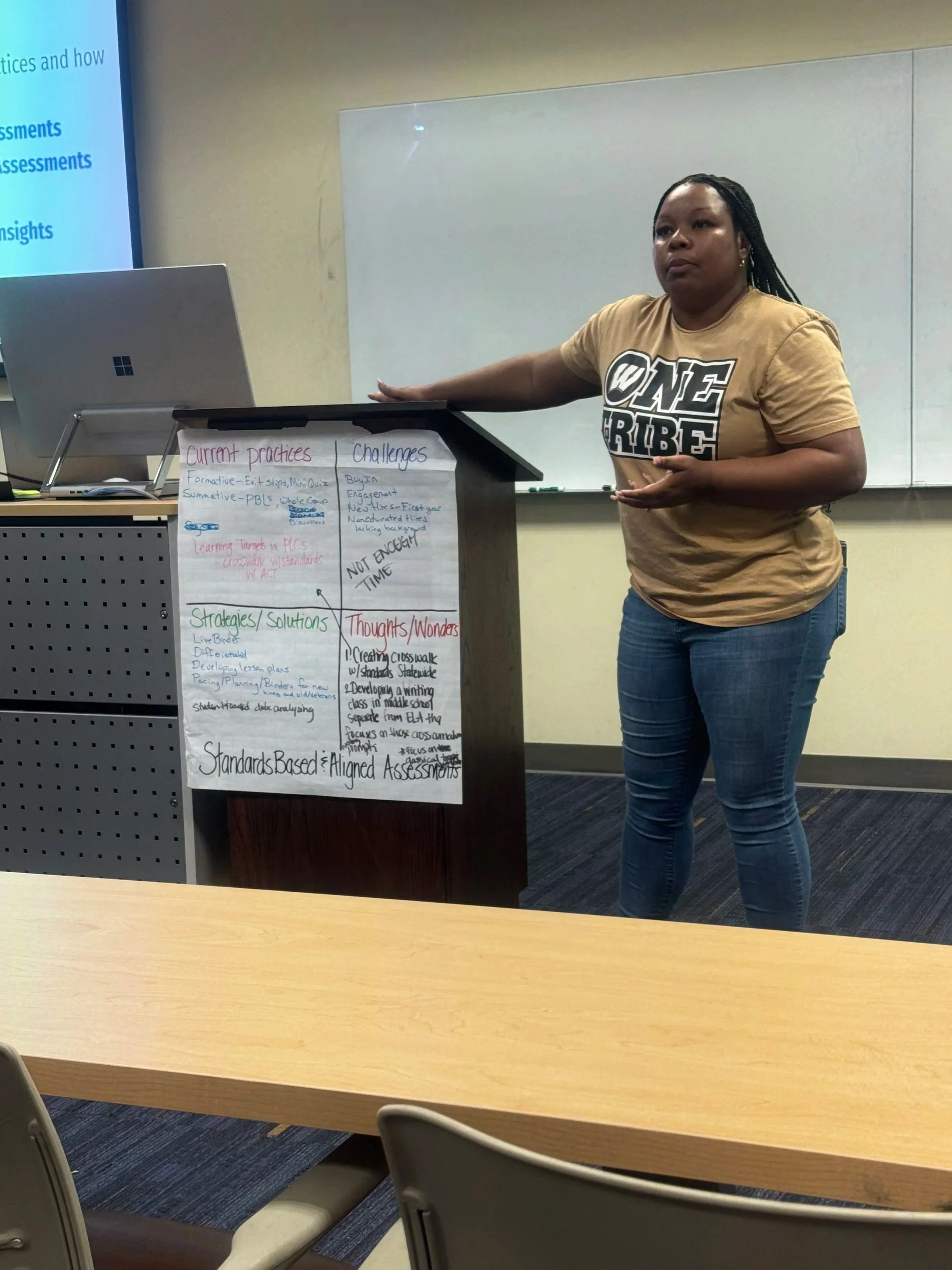 Across classrooms, coaching sessions, professional learning, and curriculum design, my work centers students while shifting school culture. I create learning experiences that are rigorous, liberatory, and wrapped in joy—frameworks that speak to both data and spirit.